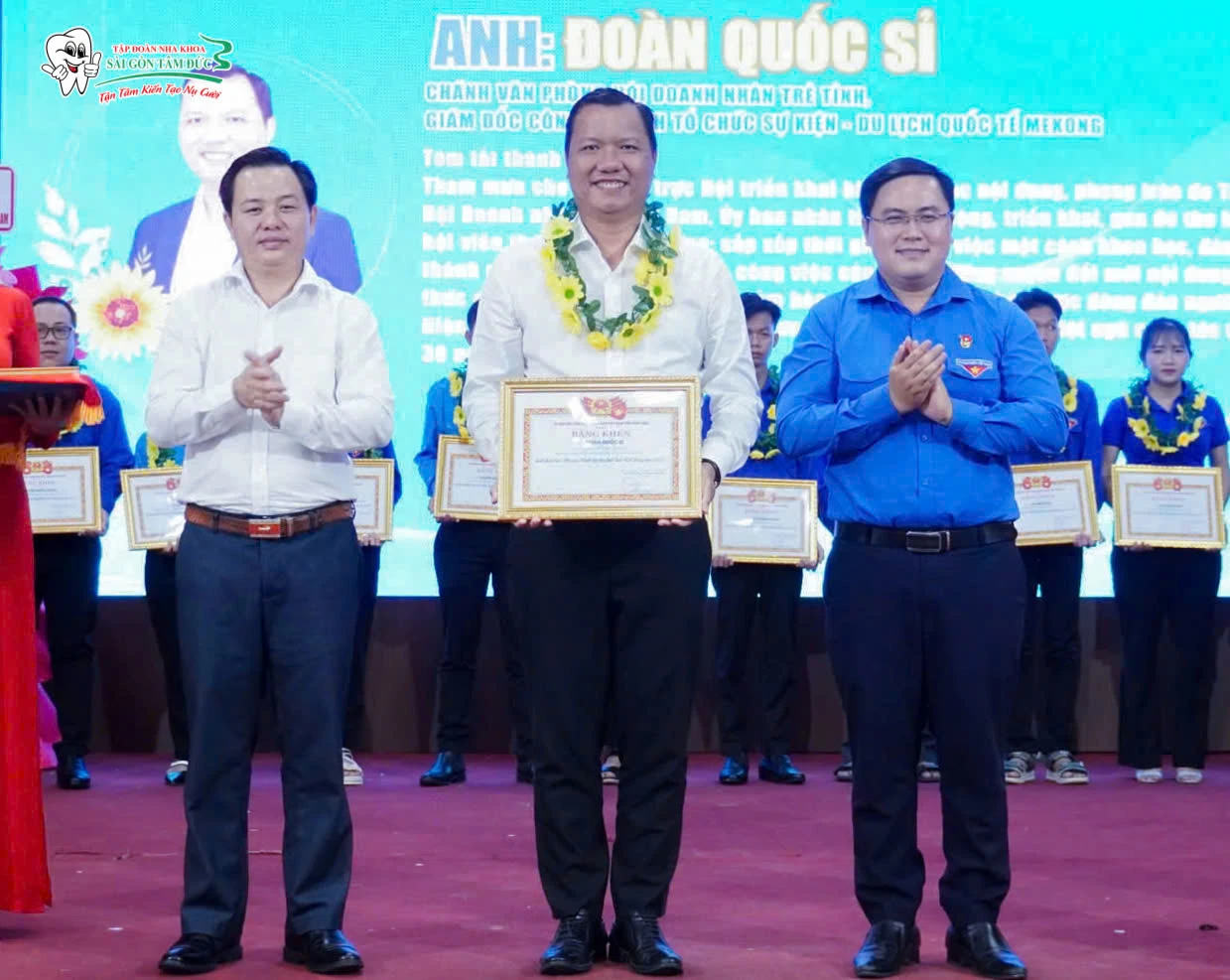 Trong buổi lễ, đại diện Ban Tổ chức đã trao tặng Giấy tuyên dương cho Tập đoàn Nha khoa Sài Gòn Tâm Đức nhằm ghi nhận những nỗ lực không ngừng nghỉ trong các hoạt động xã hội và phong trào thanh niên.